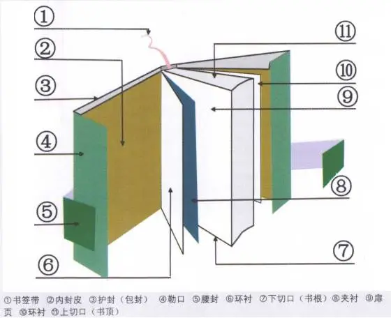 又称封脊,是指连接封面和封底的书脊部。书脊上一般印有书名、册次(卷、集、册)、作者、译者姓名和出版社名,以便查找。
